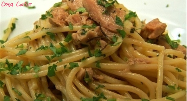 Fate soffriggere e aggiungete il tonno, lo fate scaldare leggermente.