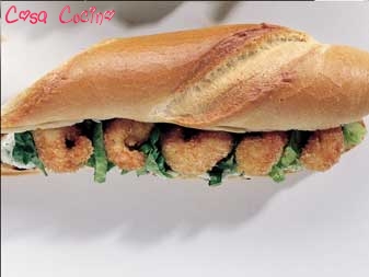 Spalmatelo con il burro aromatizzato, guarnitelo con le foglie di lattugiae farcitelo con le code di scampo fritte.