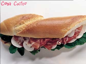 Togliete lo sfilatino dalla griglia, farcitelo con la rucola e le fettine di champignons condite, aggiungete le fette di prosciutto crudo e servite.